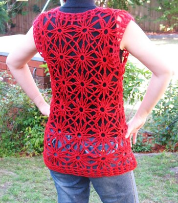 This flaming Red Sunflower Top is surely an eye catching hot outfit that can be worn for any occasion. The top is made using 3 ply fingering mohair that gives such wonderful soft and airy feels.