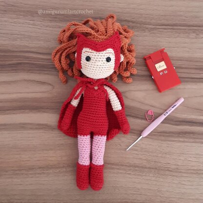 Red sorceress measures 28cms, cotton yarn super fine / fingering and a 2mm crochet.
