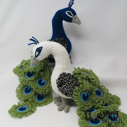 I remember thinking that King was pretty when he had his tail up in his classic tough-guy display, but that he was most beautiful when he was strutting along, his tail gently floating behind him, swaying in time. I always marveled at how his long feathers always fell perfectly back into place after his dance. In this spirit, I chose not to make a peacock with its tail in the air, but rather one with its tail folded into that soft royal train.
