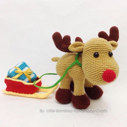 This is a DOWNLOADABLE PATTERN. Written in English using US terminology. This reindeer is sweet and charming. He is on his way to deliver present to a special child.