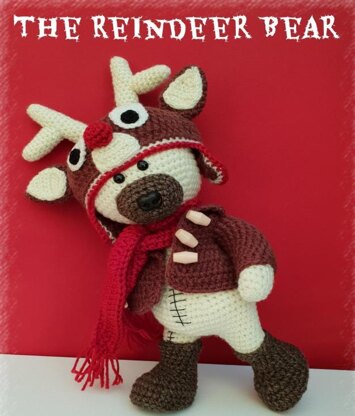 We would like to introduce to you 'Reindeer Bear' he is part of 'The Cuddle Me Collection', he is worked in basic stitches and rounds, is worked in Aran (10PLY Worsted) and DK (8PLY), is written in US terminology and stands at approximately 10" in height,