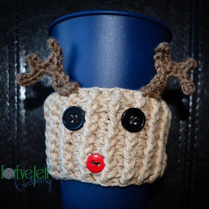 Materials: This reindeer cup cozy is made with less than a skein of cotton yarn and just small amount of contrasting color for the antler.
