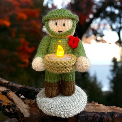 This gorgeous Remembrance Soldier knitting pattern is made to hold a battery operated tea light. It measures 20 cms tall from the base to the top of his hat.