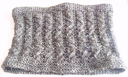 It is a one piece, knit in the round cowl. You can turn it into an infinity scarf or just scarf. 2-st left and right cross are used for the stitch pattern. Any yarn and colour will be great for it. Gauge is unimportant.