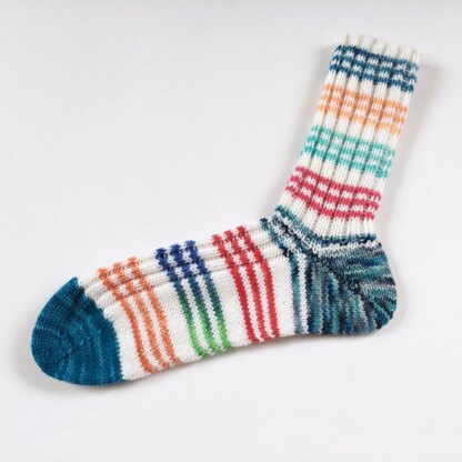 Strickanleitung für Ringelsocken aus Wollresten. Das Muster geht für jede Größe laut Sockentabelle. Diese Anleitung enthält keine Informationen zur Ferse und Spitze.