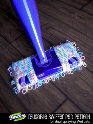 I found out after buying a new Swiffer that they have updated the design. The new version of the Wet Jet has dual sprayers! This is fantastic - but it also means I need a new reusable cover design! So I got busy and came up with this. My original crochet pattern for the dual spraying Wet Jet! These are much better than store-bought pads, plus Earth-friendly! Save money while you save the planet! The loopy design gets into all the crevices... something the Swiffer brand pads can't do! Simply remove and toss in the washing machine. Makes a great housewarming gift, or whip up a few dozen to give as Christmas gifts!