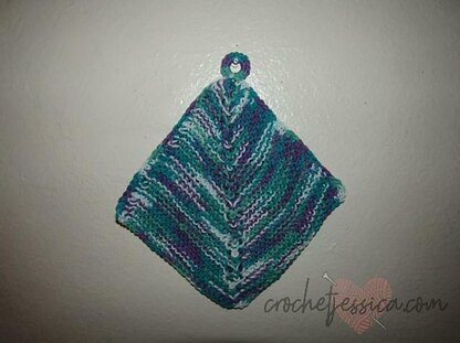 This potholder uses BOTH knit and crochet. The body of the potholder is knitted while the border and hanger are crocheted.