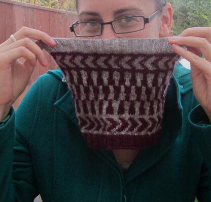 The simple colorwork pattern is provided in chart form, with written instructions explaining the general structure. You could easily knit the cowl flat and seam up afterwards, although the pattern assumes knitting in the round.