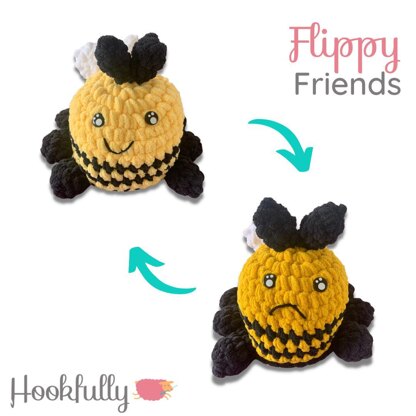 This crochet pattern will help you create a reversible bee plush toy. The bumble bee amigurumi is reversible and can be a different colour either side. You could also get creative with the bees face and have the toy happy and sad, or awake and sleeping.