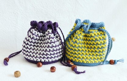 This drawstring bag is an easy crochet pattern to make, it is worked from bottom up. The body is made from rows of double crochet and front post single crochet stitches.