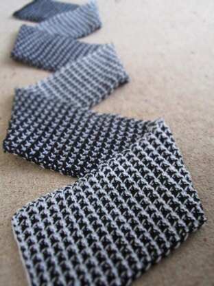 Reversible Tunisian Crochet stitches used to create a scarf with a Houndstooth Design on both sides in a different colour orientation.