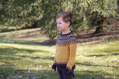 This is a child’s version of my Reykjavik Soft design. The size modification is done with gauge and modifying the neck design and sizing. The pullover is worked with bamboo-cotton blend yarn to give more opportunities to wear it all year round and the material is lovely for kids with sensitive skin.