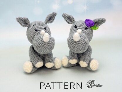Easy step-by-step DIY tutorial how to crochet Rhino Twins. The crochet pattern consists of 13 pages with text and 39 photos. Detailed instructions in English language. The USA terms and abbreviations are used.