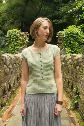 Wilderness is a pretty textured top to go exploring the unkown lands outside the valley. This short sleeved fitted top, with its deep front opening, is perfect for layering in spring and ideal for showing off your special buttons.