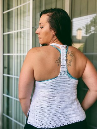 The Rhythm Tank is a simple yet bold crochet racerback tank top designed for everyday wear.