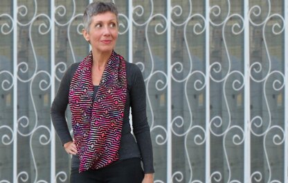 Rhythmical Lines is an infinity scarf featuring a super simple slip-stitch pattern inspired by a Waclaw Szpakowski drawing.