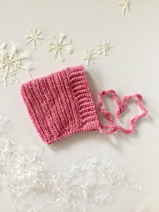 - Use your favorite worsted weight yarn in any color to make an adorable baby bonnet.
