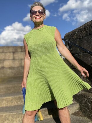 The Ribbed Dress knitting pattern is easy even for a relative beginner. It is worked from the top down, seamless, using stockinette and simple rib stitches, which widen as you progress down the skirt to create the swing shape.