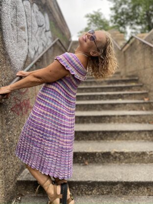 The Ribbed Foldover Dress is an easy, seamless knit, worked from the top down in a basic rib stitch. The fitted top begins with a ruffled foldover neckline (the ruffle is optional and added at the end), then flows into A-line skirt gradually increasing stitches to the hem.
