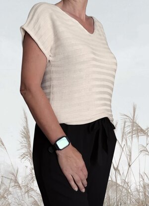 Ein leichtes Top quer gestrickt, im klassischen Rippenmuster mit kurzen Ärmeln, für einen lässigen und dennoch eleganten Look. Das Bambusgarn sorgt für einen seidigen Glanz, angenehme Kühlung und ein besonders weiches Tragegefühl. Die seitliche Strickrichtung verleiht dem Modell eine moderne, raffinierte Note. Ob zur Jeans oder zum Rock – dieses Top ist ein vielseitiger Begleiter mit Stil und Komfort.