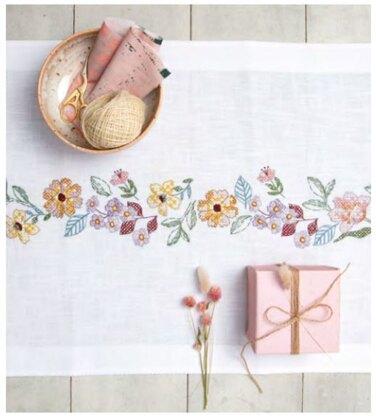 Erstellen Sie wunderschöne Tischläufer mit unseren Stickpackungen. Hier ist alles enthalten, was Sie für die bezaubernden Motive benötigen. So macht Handarbeit Spaß!\n\nPackung bestehend aus vorgezeichnetem Läufer, Stickgarn und Nadel\nMotiv: Sommerblütenkranz\ninklusive Anleitung\nMaterial des Läufers: 50% Baumwolle, 40% Modal, 10% Leinen\nMaße: 45 x 100 cm\nwaschbar bei 40°C