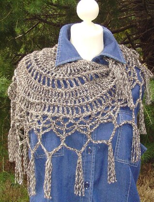 Three defined "ridgelines" and a fringed border add western style and attitude to this versatile, one-skein shawlette. Use a tweed or marled yarn to enhance the rustic appeal of this accessory.