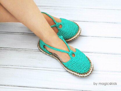 SIZES: from 5 - 6 US up to 9,5 – 10,5 US (36 - 37 EU up to 42 - 43 EU ) SKILL LEVEL: INTERMEDIATE. Basic skills of crocheting are needed. MATERIALS: • Jute rope 2 mm thickness for the soles, sturdy rope (you can find this kind of rope in any home improvement store) •Cotton rope 2-3 mm thickness for the insoles or MEDIUM yarn •Any kind of yarn - thickness 2- FINE/ SPORT •2 rings - 1inch (2,5cm) diameter (I found some plastic rings on curtain store :) •Hook – size 4(EU) / G6(US) for the soles •Hook – size 3,5 (EU) / E4 (US) for the upper part •Scissors