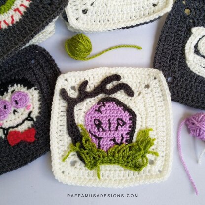 The R.I.P. Tombstone Granny Square is part of the Halloween Granny Square series that I am sharing as part of an e-mail CAL with the subscribers to my blog.