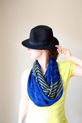 Worked entirely in stockinette stitch, Ripken is a cowl that takes full advantage of the softness and beauty of cashmere. There is no texture or lace that breaks the even surface of the fabric, and the stripes on the bias add just the right amount of interest to this piece.
