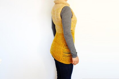 Sleeveless Super Bulky Sweater, simple yet elegant, sexy, warm and stylish. With added detail on sides this creates a slim line silhouette. Great for layering, it looks fantastic over leggings or jeans.