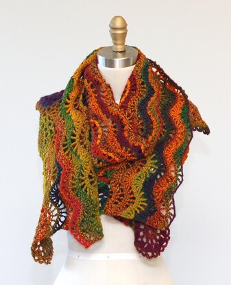Have you ever been intimidated to “join as you go”? There’s no fear here! In this pattern you will learn how to join motifs “as you go” for a seamless finish! This bright and fun wrap has a lacy ripple body that is also connected “as you go.” It’s a thrill to watch the colors change and the various stitches keeps things interesting. Featured as Skacel Collection, Inc.’s August 2017 Crochet-Along-Together (CAT).