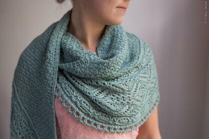 Once the body of the shawl is complete, stitches are cast on for the border, which is worked across the bottom edge. The stitch patterns are presented in chart form only.