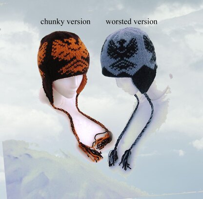 Chunky version has no border and 3 eagles. Worsted version has 4 eagles flying over the mountains.