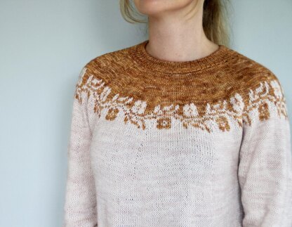 FINISHED MEASUREMENTS: Neck opening: 17.6, (18.4, 19), 19.5“ / 44.8, (46.8, 48.2), 49.6 cm Yoke length: 7.5, (7.5, 7.5), 7.5“ / 19, (19, 19), 19 cm Chest circ.: 39.5, (43.3, 47), 51“ / 100.3, (110, 119.5),129.3 cm Body length: 15, (15, 15), 15“ / 38, (38, 38), 38 cm Arm length: 15.3, (15.3, 15.3), 15.3“/ 39, (39, 39), 39 cm Bottom opening: 36, (39.6, 43.3 ), 47“ / 91.7, (100.6, 110.3), 119.3 cm