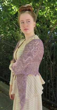 River House is an elegant crescent shaped shawl worked in a cascade of lace patterns. It is worked top down with increases along the edges of both the right and wrong side rows to create the broad crescent shape. The pattern is CHARTED ONLY.