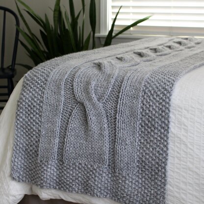 River of Dreams is a chunky, modern bed runner which features a giant cable & seed stitch border. This accent blanket adds a layer of coziness to your bed!