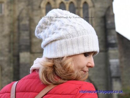 DESIGN OVERVIEW: The hat is knitted in the round on circular needles with 2 x 2 ribbing and fancy cable combination. It can be knitted in two types: beanie with short ribbing or slouch with long ribbing which can be folded two or even three times for multi-styles wearing and extra warm if needed. The PDF pattern is easy to follow and it consists of row-by-row instructions and cable charts.