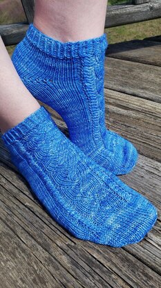 Roaring Fork is a stream in one of my favorite places: the Great Smoky Mountains in Tennessee. The delicate flowing pattern on these socks reminds me of the rushing rapids of Roaring Fork. They are knit top down, with a German Short Row heel and a rounded toe. They are designed as ankle socks, but are easy to lengthen. This pattern is written using magic loop, but you can use whatever small circumference method you prefer!