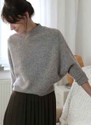 This oversize sweater with batwings is short, has a loose fit and so it is an ideal match for highwaisted trousers and skirts. The sweater is seamless, you just knit it from top down.