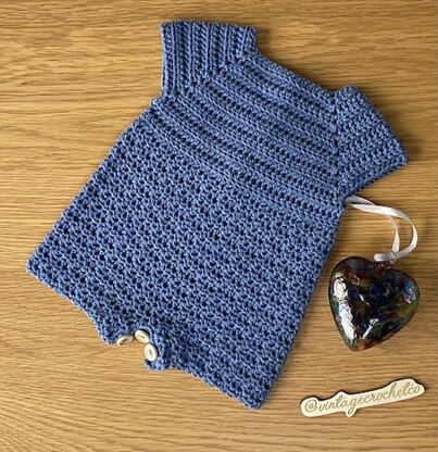 Featuring a delicate pattern & a ribbed, square yoke with button neck and crotch fastenings.