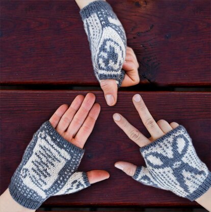The pattern includes two full charts for the different right and left mitts. Two sizes allow these mitts to fit hands between 6" and 9".
