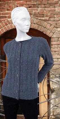 Simple stitch combinations frequently create our favorite sweaters. Edged with basketweave pattern along the lower edges of the body, a basket rib along the front edges, you'll also find a ribbed pattern on the body and sleeves, with twisted stitches and small knots on the front. A simple rolled edge is worked on each sleeve.