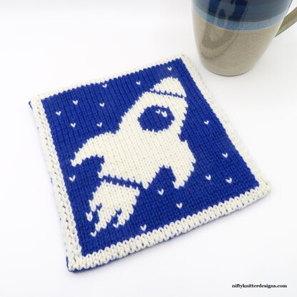 Decorate your kitchen with the Rocket Ship Potholder! Hurtling through space, this rocket ship is on its way to explore the universe!