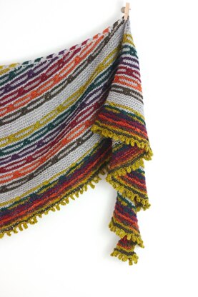 I have to admit I have a weakness for gradient sets that are made up of multiple colors instead of shades of one color. ( Although I like those too, maybe it’s just that the little skeins look so cute when they’re lined up?) Anyways, I fell for the Miss Babs gemstone gradient set and bought one figuring it would be a shawl. Rockhound is the resulting shawl. It is a top down crescent that begins with a garter tab cast on. Increases are worked on both right side and wrong side rows. The stitch patterning uses crossed slip stitches. The result is a shawl that is cozy and easy to wear.
