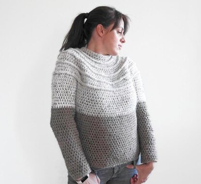Crochet seamless yoke sweater in bulky yarn. Simple stitches and just a little bit of texture on the yoke make this sweater a super easy make even for beginners.