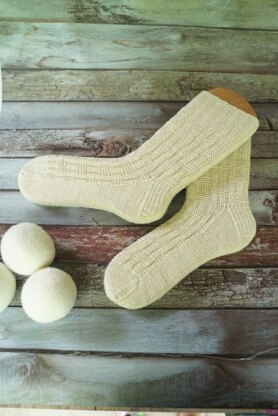Here’s a top-down unisex sock in three sizes S(M, L) with an appealing rib-and-garter texture traveling down the leg and over the top of the foot. The easily memorized motif makes for a good traveling project that is uncomplicated by cables or tricky sts; pattern may be reversed for toe-up construction.