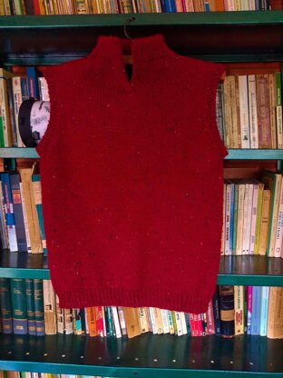 This vest is knitted from top to bottom using the Top-Down method. It is completely seamless. Start with the tubular cast-on technique. Knit the collar using the double knitting technique. Then, place markers and start the shoulder increases by the Contiguous Method (the contiguous sleeve method desenvolvido por Susie Myers (SusieM no Ravelry). Then front and back are worked separately to shape the armhole, then the pattern resumes with circular knitting, joining the front and back from the end of the armholes and knitting the rest of the body to the bottom. The body is then finished with 12 rounds of rib stitch and Icelandic bind-off. Finally, the stitches of the armholes are lifted and ended using the double knitting technique and tubular bind-off.