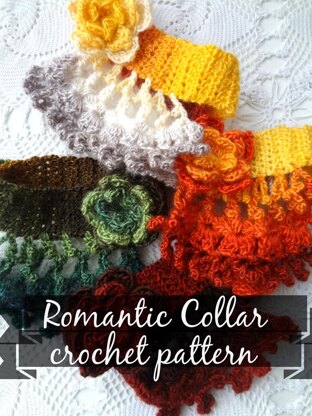 The intricate pattern of the collar gives it a rich and eye-catching effect. It can be styled with both shirts and sweaters for a unique look. If made out of a chunkier yarn it would look great peeking under a coat as a scarf.