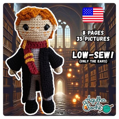 The finished doll should measure about 19 cm tall. However, the final size may vary depending on yarn type, crochet hook type and personal tension.