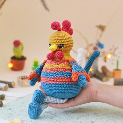 Every morning Rico the cockerel begins with energetic exercises and a loud cheerful crowing. This is how he wakes up all his neighbors. They don't have alarms, they trust him 100 % because they know that he will crow in time! A new day starts. He changes his pajamas, leaves the house, and goes to his favorite... What happened to him next? You can find the whole story in the pattern and you can also make your own cute Gallic Rooster with my Rico the Rooster Amigurumi crochet toy pattern.
